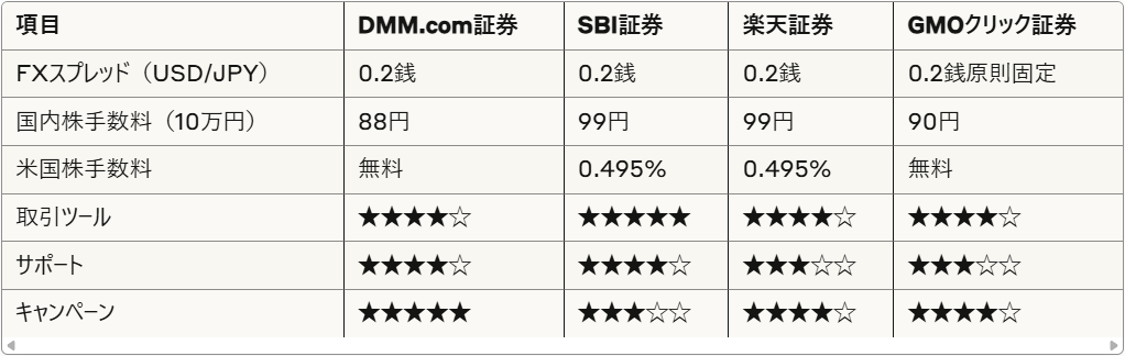 1. 主要ネット証券比較表