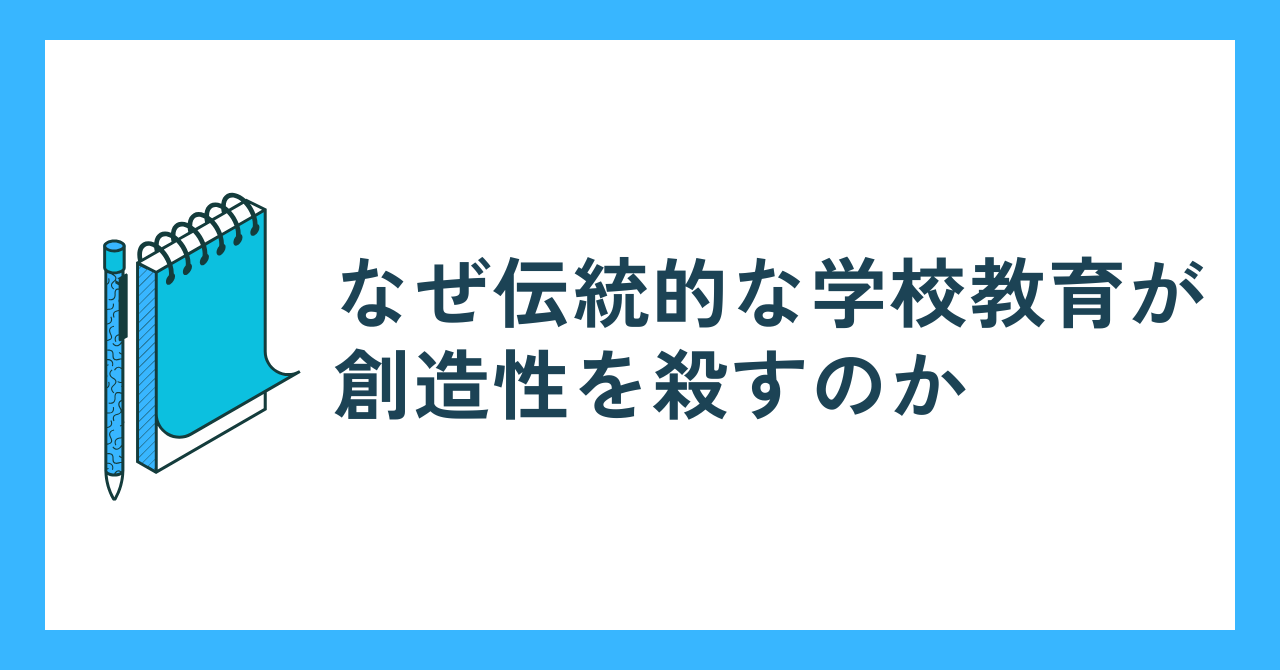 伝統的な学校教育が創造性を殺すという認識は、もはや教育研究者の間では常識となっています。しかし、問題を認識することと、実際に変革を起こすことの間には大きなギャップがあります。